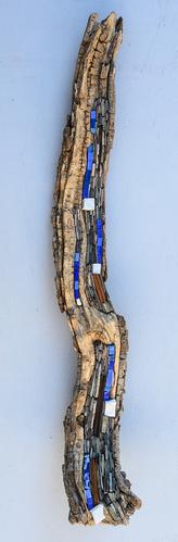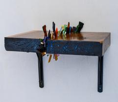 This "WOODSAIC" series incorporates the mosaic inlay into an artistically crafted shelf.
